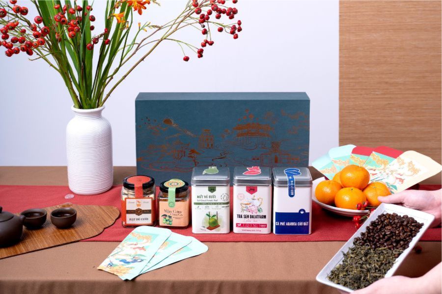 - Tứ Phương Sum Vầy - Bộ sưu tập hội tụ các đặc sản đậm đà bản sắc bốn phương, đồng thời, tạo nên khoảnh khắc đoàn viên ấm cúng, ý nghĩa và đậm chất truyền thống.