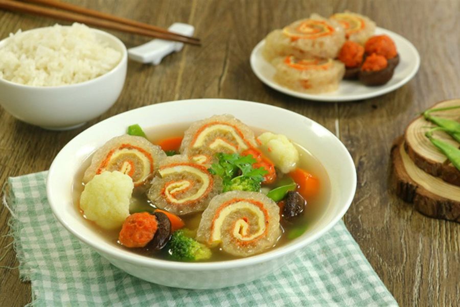 Canh bóng thả (bóng bì) là món ăn truyền thống trong mâm cỗ của người miền Bắc vào dịp Tết. Món ăn này được chế biến cầu kỳ, kết hợp với các loại rau củ và tôm thịt, mang lại sự thanh mát và nhẹ nhàng. Canh bóng thả tượng trưng cho sự trọn vẹn và no đủ trong năm mới, giúp gia đình đón nhận nhiều điều tốt đẹp.