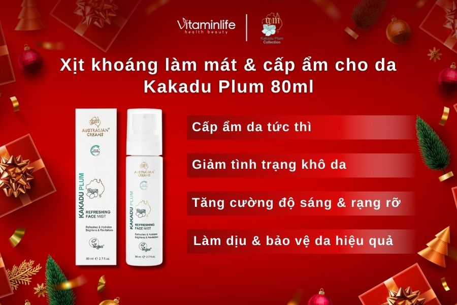Mùa Giáng Sinh là thời điểm để phái đẹp được yêu thương và chăm sóc bản thân. Bộ mỹ phẩm chăm sóc da Kakadu Plum Collection từ Úc với chiết xuất 100% tự nhiên, với thành phần chính từ mận Kakadu - loại quả chứa hàm lượng vitamin C cao nhất thế giới, sẽ là món quà lý tưởng dành cho phái đẹp.
