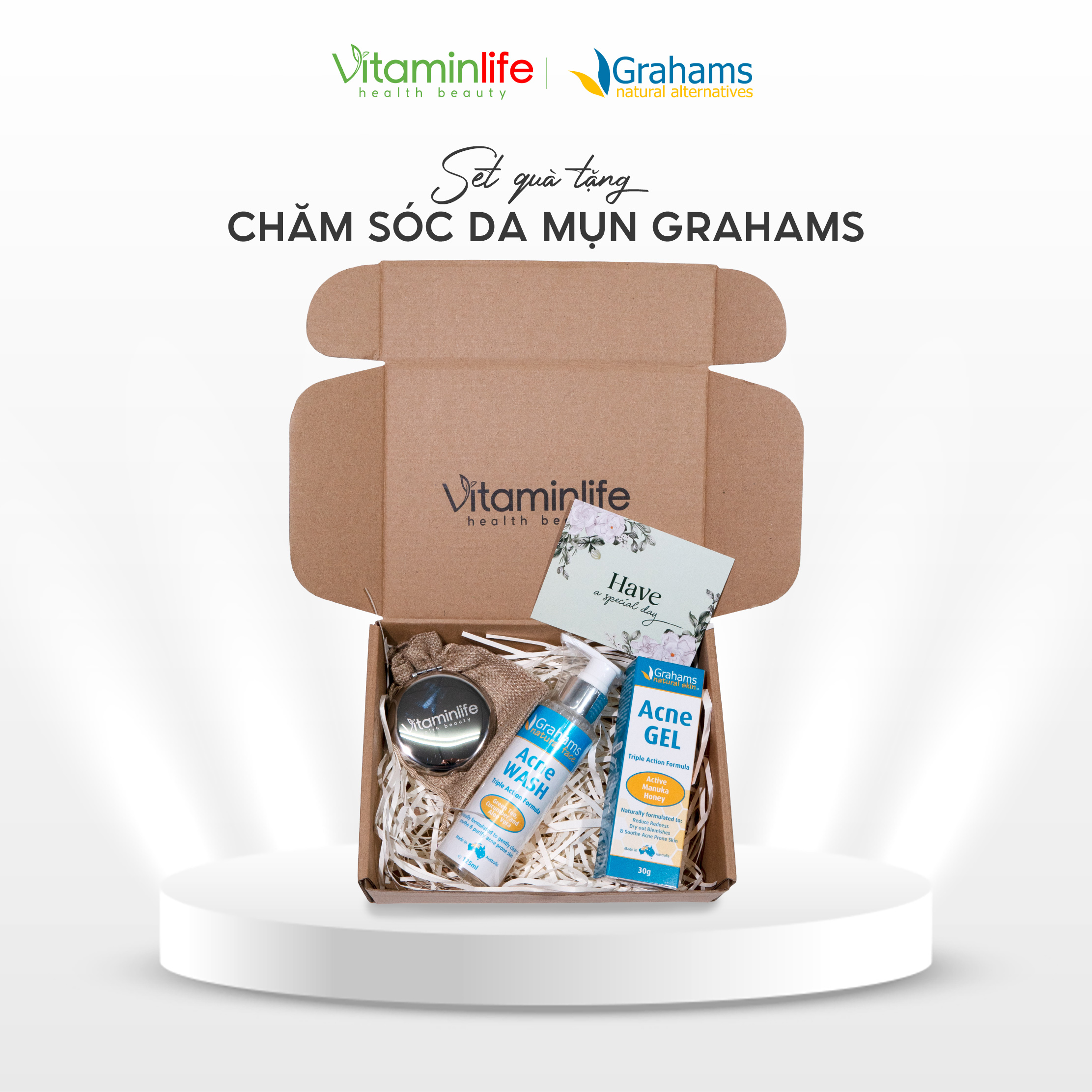 Về quà tặng mỹ phẩm đặc trị da, nhà Vitaminlife gợi ý cho bạn những Set Quà Tặng mỹ phẩm đến từ thương hiệu Skin O2 và Grahams được chiết xuất từ thiên nhiên giúp giải quyết các vấn đề về da như mụn, nám, tàn nhang, lão hoá da,...