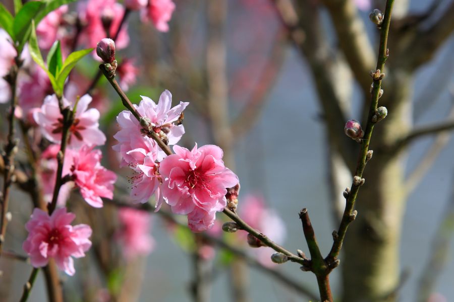 - Hoa tươi và cây cảnh: Hoa tươi như hoa đào, hoa mai, quất cảnh hay cúc đại đóa là những biểu tượng đặc trưng của mùa xuân, mang lại sinh khí và tài lộc. Bạn có thể đặt hoa tươi ở phòng khách, bàn thờ hoặc ngoài sân để làm sáng bừng không gian nhà